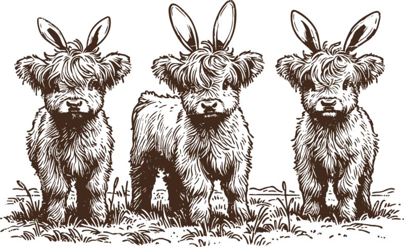 Highland Cows with Bunny Ears